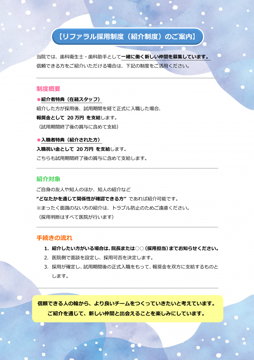 報奨金は、歯科衛生士採用なら