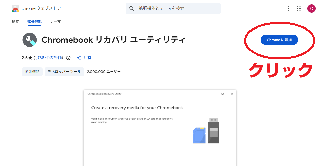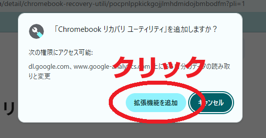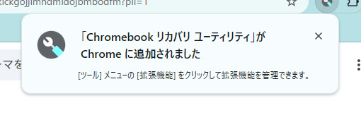 これで拡張機能の「Chromebookリカバリユーティリティ」がChromeに追加されました。