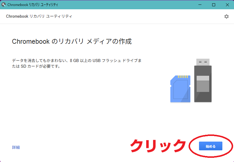 「Chromebook のリカバリ メディアの作成」