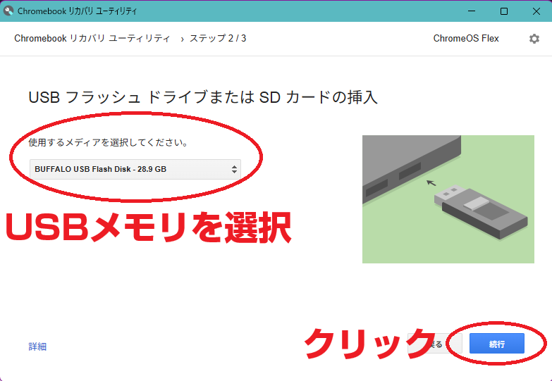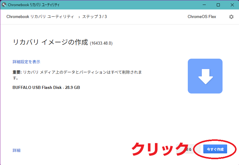 ChromeOS FlexをインストールするためのUSBを作成します。